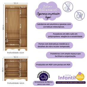 - Sistema antitombamento no guarda-roupa e cômoda: proporciona segurança para o bebê e tranquilidade aos pais.