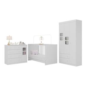 Quarto de Bebê Completo com Berço 3 em 1 para Colchão 130x60cm Brisa Multimóveis MP4525 - Branco