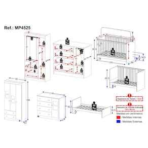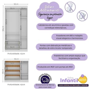 - Sistema antitombamento no guarda-roupa e cômoda: proporciona segurança para o bebê e tranquilidade aos pais.