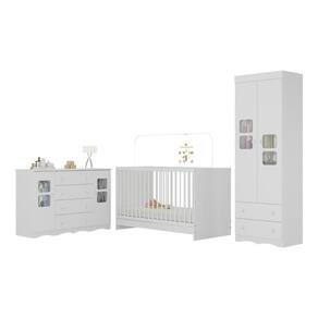 Diferenciais: - Conjunto produzido em MDP/MDF (12/15mm) de reflorestamento com acabamento acetinado (cerca de 20% de brilho): sustentabilidade e durabilidade. - Berço 3 em 1 que se transforma em sofá e minicama, acompanhando o crescimento do bebê. - Lastro em madeira com 3 regulagens de altura e suporte para mosquiteiro para noites mais tranquilas e protegidas. - Berço certificado pelo INMETRO (Selo n 000332/2025). - Padrão nacional (tamanho do colchão indicado: 130x60cm). Colchão não incluso. - Frentes e rodapés (guarda-roupa e cômoda) produzidos em MDF. - Guarda-roupa com 2 portas e 2 gavetas: amplo espaço para organizar roupinhas e acessórios. - Cômoda com 2 portas e 4 gavetas. - Detalhes de vidro incolor temperado 3mm nas portas: toque charmoso que permite visualizar o interior dos móveis. - Corrediças telescópicas: abertura total e silenciosa das gavetas. - Cabideiro em alumínio: permite acomodar roupas longas e curtas para que não amassem. - Puxadores em ABS delicados e práticos. - Rodapés usinados: visual elegante para o guarda-roupa e a cômoda. - Sistema antitombamento no guarda-roupa e cômoda: proporciona segurança para o bebê e tranquilidade aos pais.