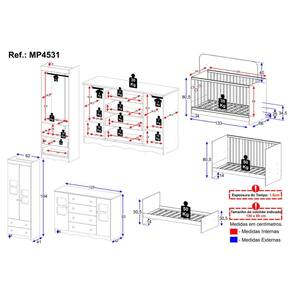 Dimensões do Produto Montado: Berço - Altura: 80,5cm | Largura: 133cm | Profundidade: 66cm Guarda-roupa - Altura: 184cm | Largura: 62cm | Profundidade: 41cm Cômoda - Altura: 83cm | Largura: 125cm | Profundidade: 42cm *Você pode consultar as medidas detalhadas na imagem técnica do produto.