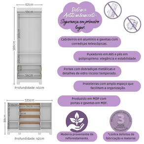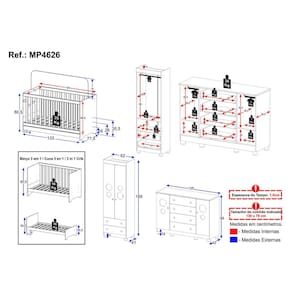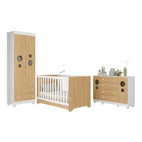 Dimensões do Produto Montado: Berço - Altura: 80,5cm | Largura: 133cm | Profundidade: 77,5cm Guarda-roupa - Altura: 189cm | Largura: 62cm | Profundidade: 41cm Cômoda - Altura: 88cm | Largura: 125cm | Profundidade: 42cm *Você pode consultar as medidas detalhadas na imagem técnica do produto.