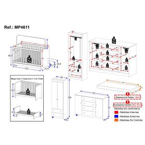 Conteúdo da Embalagem: 1 (um) Berço 1 (um) Colchão 1 (um) Guarda-roupa 1 (uma) Cômoda Manual de Montagem Kit Ferragem