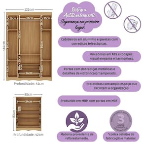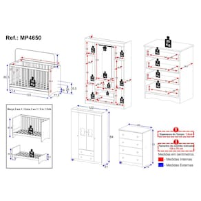 Dimensões do Produto Montado: Berço - Altura: 80,5cm | Largura: 133cm | Profundidade: 77,5cm Guarda-roupa - Altura: 184cm | Largura: 122cm | Profundidade: 41cm Cômoda - Altura: 83cm | Largura: 65cm | Profundidade: 42cm *Você pode consultar as medidas detalhadas na imagem técnica do produto.