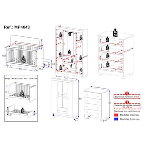Dimensões do Produto Montado: Berço - Altura: 80,5cm | Largura: 133cm | Profundidade: 77,5cm Guarda-roupa - Altura: 189cm | Largura: 122cm | Profundidade: 41cm Cômoda - Altura: 88cm | Largura: 65cm | Profundidade: 42cm *Você pode consultar as medidas detalhadas na imagem técnica do produto.