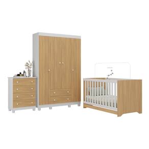 Quarto de Bebê Completo com Berço Americano 3 em 1 p/Colchão 130x70cm Allegra Multimóveis MP4586 - Branco | Marrom