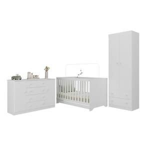 Diferenciais: - 3 anos de garantia contra defeitos de fabricação e material. - Conjunto produzido em madeira de reflorestamento (MDP 12/15mm) com acabamento acetinado (cerca de 20% de brilho): sustentabilidade e durabilidade. - Berço 3 em 1 que se transforma em sofá e minicama, acompanhando o crescimento do bebê. - Lastro em madeira com 3 regulagens de altura e suporte para mosquiteiro para noites mais tranquilas e protegidas. - Berço certificado pelo INMETRO (Selo n 0000085/2018). - Padrão americano (tamanho do colchão indicado: 130x70cm). Colchão não incluso. - Grade Soft (PVC): ecologicamente correta, com matéria-prima livre de metais pesados, atóxica e com proteção antiamarelamento. - Guarda-roupa com 2 portas e 2 gavetas: amplo espaço para organizar roupinhas e acessórios. - Cômoda com 2 portas e 4 gavetas. - Corrediças telescópicas: abertura total e silenciosa das gavetas. - Cabideiro em alumínio: permite acomodar roupas longas e curtas para que não amassem. - Puxadores em ABS delicados e práticos. - Rodapés: visual elegante para o guarda-roupa e a cômoda. - Sistema antitombamento no guarda-roupa e cômoda: proporciona segurança para o bebê e tranquilidade aos pais.