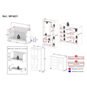 Dimensões do Produto Montado: Berço - Altura: 80,5cm | Largura: 133cm | Profundidade: 77,5cm Guarda-roupa - Altura: 184cm | Largura: 92cm | Profundidade: 41cm Cômoda - Altura: 83cm | Largura: 95cm | Profundidade: 42cm *Você pode consultar as medidas detalhadas na imagem técnica do produto.