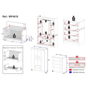 Dimensões do Produto Montado: Berço - Altura: 80,5cm | Largura: 133cm | Profundidade: 77,5cm Guarda-roupa - Altura: 184cm | Largura: 122cm | Profundidade: 41cm Cômoda - Altura: 83cm | Largura: 65cm | Profundidade: 42cm *Você pode consultar as medidas detalhadas na imagem técnica do produto.
