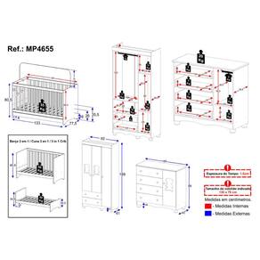 Conteúdo da Embalagem: 1 (um) Berço 1 (um) Guarda-roupa 1 (uma) Cômoda Manual de Montagem Kit Ferragem