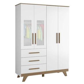 1x Guarda Roupa de Bebê 4 Portas Detalhe em Acrílico 3 Gavetas Retrô Branco /Carvalho Largura: 154,8 cm Altura: 209,6 cm Peso: 101,22 kg Profundidade: 49,8 cm Necessita Montagem: Sim