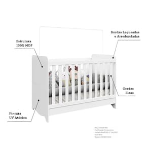 O conceito de berco 3 em 1 promove melhor aproveitamento do movel, possibilitando que seu bebe utilize-o ate por volta dos 5 anos, dependendo das condicoes de uso. Esses produtos tem sua montagem flex, ou seja, na sua maioria, podem ser montados como berco, mini cama e mini sofa, que e o caso do Berco 3 em 1 Ben. Alem desse beneficio, o Berco Ben possui outras caracteristicas que te garantem a melhor escolha na montagem do quartinho infantil. Ele possui excelencia com sua estrutura em 100 MDF, acabamento em verniz e pintura atoxica, sem mencionar seu design com bordas arredondadas, tudo para oferecer maior seguranca, durabilidade e conforto. Tambem possui certificado do INMETRO 004867/2020 e um suporte para mosquiteiro.