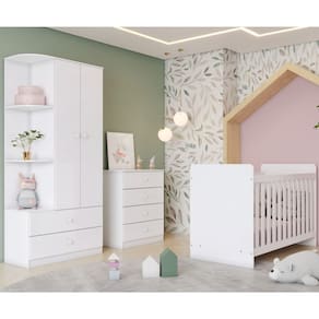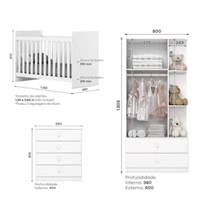 Quarto de Bebê Completo com Guarda Roupa 2 Portas Cômoda 4 Gavetas e Berço Labirinto Henn, projetada para garantir o conforto e a segurança do seu bebê. A Cômoda Infantil 4 Gavetas Labirinto Henn traz sofisticação e qualidade ao quarto, sendo feita com materiais duráveis. A linha Labirinto foi criada com carinho para auxiliar na chegada do bebê, seguindo normas de segurança para a tranquilidade dos pais. O Guarda Roupa possui gavetas com corrediças metálicas, acabamento em pintura UV e amplo espaço interno para roupas, além de prateleiras externas que embelezam o ambiente. É ideal para organizar peças menores, tornando o quarto mais funcional e acolhedor.