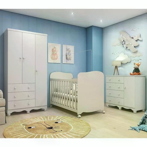 Quarto de Bebê Completo com Guarda Roupa 3 Portas Cômoda e Berço 100% MDF Mimo Espresso Móveis Branco Brilho. Um ambiente aconchegante, prático e funcional para o bebê. A resposta para sua busca! Todos os móveis produzidos em 100% MDF com acabamento em Pintura UV Atóxica para maior segurança de toda a família. As gavetas possuem corrediças metálicas telescópicas que proporcionam mais facilidade ao abrir e fechar. Com cabideiros metálicos e prateleiras, valorizando o espaço interno. Acompanha 2 rodapés (1 usinado e um reto), possibilitando a escolha no momento da montagem. O berço Uli possui um design clássico e elegante com grades fixas e estrutura resistente, garantindo a durabilidade. Além disso, possui certificado do Inmetro, três regulagens de altura no estrado e acompanha suporte para mosquiteiro. Ean: 7909903267493