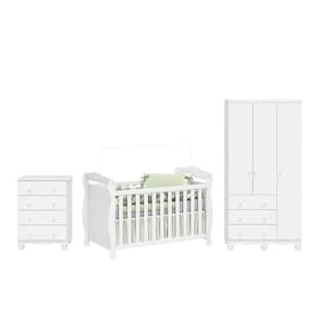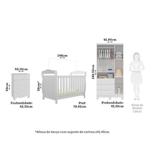 Qualidade, beleza, conforto e segurança para toda família na hora de montar o quartinho do(a) bebê. Essa é a proposta desenvolvida queridinha do momento. Produtos estrurados em 100% MDF e com acabamento em pintura UV atóxica. O berço possui padrão de colchão americano, estrado com altura regulável e todas as bordas arredondadas e laqueadas, que proporcionam mais segurança e uma sensação agradável ao toque, além de poder ser utilizado como mini cama ou mini sofá, prolongando seu uso. Já o guarda roupas e a cômoda possuem gavetas que deslizam suavemente por corrediças telescópicas, facilitando a abertura, cabideiros metálicos e algumas prateleiras que são ideais para acomodar as peças com organização da sua preferência. Também acompanham os produtos, 2 opções de rodapés, um usinado (torneado) e outro reto, para que você escolha no momento da montagem qual se adequa ao estilo do ambiente. Aproveite para adquirir o seu agora! Ambiente composto por: - 1 Guarda Roupa 3 Portas e 3 Gavetas 188,50 x 91,90 x 41,50 (A x L x P - cm) - 1 Cômoda 4 Gavetas 88 x 65,10 x 42,30 (A x L x P - cm) - 1 Berço Mini Cama 3 em 1 99 x 148 x 78,40 (A x L x P - cm)