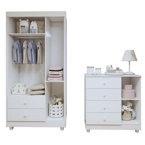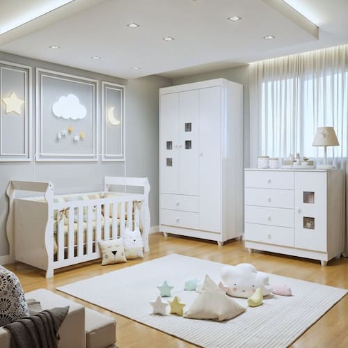 O Quarto de Bebê Completo Bibi traz conforto e funcionalidade para o cantinho do seu bebê. Com um design elegante e prático, o conjunto inclui um guarda-roupa espaçoso, perfeito para organizar as roupinhas, um berço seguro e confortável, e uma cômoda com amplas gavetas para facilitar o armazenamento dos itens essenciais do bebê. Este quarto combina qualidade e sofisticação, proporcionando um ambiente acolhedor para o seu bebê crescer com estilo e bem-estar.