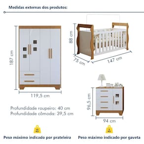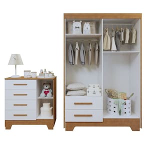 Crie um ambiente acolhedor e funcional para o seu bebê com este Quarto de Bebê Completo, que inclui guarda-roupa, berço e cômoda. O guarda-roupa oferece espaço para roupinhas e acessórios, mantendo tudo organizado. A comoda facilita o dia a dia e pode ser usada como trocada, enquanto o berço garante noites tranquilas e seguras. Com design encantador e prático, esse conjunto é perfeito para trazer conforto e praticidade para a rotina dos pais.