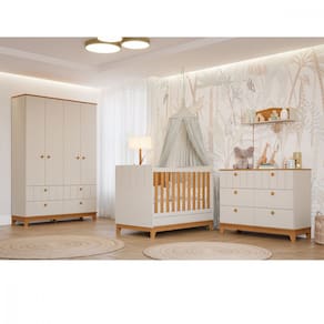 Quarto de Bebê Completo com Guarda Roupa Cômoda Berço e Colchão Liza Permobili.