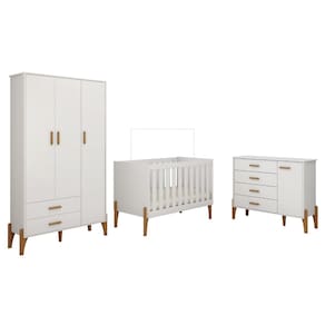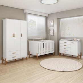 O Quarto de Bebê Liris reúne segurança normativa, estética atemporal e funcionalidade pensada para crescer com seu filho. Produzido 100% em MDF com pintura atóxica e pés em madeira maciça, segue a NBR da ABNT para oferecer resistência e acabamento refinado. O berço transforma-se em mini cama (2 em 1), com estrado regulável em 3 alturas, espaço para colchão 130x70 cm e suporte para mosquiteiro aramado. A cômoda com porta organiza fraldas, roupas e acessórios; o guarda-roupa 3 portas traz compartimentos inteligentes e cabideiro robusto. Linha Liris: conforto, durabilidade e praticidade para o quarto do bebê. Projetado para facilitar a rotina dos pais, o conjunto oferece móveis que otimizam espaço, são duráveis e valorizam o ambiente — escolha para quem quer segurança sem perder estilo sempre Acabamento da Gaveta: Pintura UV Acabamento da Porta: Pintura UV Acompanha Cama Auxiliar: Não Acompanha Colchão: Não Acompanha Manual de Instalação: Sim Acompanha Suporte para Mosquiteiro: Sim - Sem Véu Altura do Conjunto: 203 cm Ambiente Principal: Quarto de Bebê Certificado: 006384/2023 Certificado INMETRO (código): 006384/2023 codigo_ean: 7900288250391 Complexidade da Montagem: Alta: deve ser montado por um montador especializado Cor: Branco Cor do Produto: Branco Cor Flex: Não Cor Interna: Branco Escala de Brilho: Acetinado Escala de Brilho da Gaveta: Semi-Brilho Escala de Brilho da Porta: Semi-Brilho Escala de Brilho da Prateleira: Semi-Brilho Estampado: Não Estrado com Regulagem de Altura: Sim Estrado Regulável em Quantas Posições: 03 Largura do Conjunto: 133 cm Linha ou Coleção: Liris Manual de Montagem e Instalação: https://product-hub-prd.madeiramadeira.com.br/868904174/documents/d8eef6fd-707f-454f-a02a-2c49ee3b83c83253875450417593480426748.pdf Marca: Móveis Estrela Material da Gaveta: MDF Material da Porta: MDF Material da Prateleira: MDF Material do Estrado: MDF Material do Fundo: MDF Material do Puxador da Gaveta: Madeira Maciça Material do Puxador da Porta: Madeira Maciça Material Principal: MDF Medida de Cada Item: Altura / Largura / Profundidade - Berço: 93 x 133 x 74 - Guarda Roupa: 203 x 112 x 40,3 - Cômoda: 95,3 x 113 x 41,5 modular: Sim Montagem Flex: Sim - Berço se transforma em mini cama Necessita Montagem: Sim Origem do Produto: Nacional Permite a Utilização de Cama Auxiliar: Não Peso: Berço: 34 kg - Guarda Roupa: 69 kg - Cômoda: 41kg Peso de Cada Item: Berço: 34 - Guarda Roupa: 69 - Cômoda: 41 Pintura Atóxica: Sim Porta Janelada: Não Possui Capitonê: Não Possui Certificado: Sim Possui Espelhos: Não Possui Gavetas: Sim Possui Grade: Sim Possui Portas: Sim Possui Prateleiras: Sim Possui Rodízio: Não Possui Trocador: Não Profundidade do Conjunto: 74 cm Quantidade de Gavetas: 06 Quantidade de Portas: 04 Quantidade de Prateleiras: 05 Recomendações de Uso, Manutenção e Limpeza: Para limpeza use um pano macio seco ou ligeiramente umedecido com água e depois um pano seco. Não use agentes de limpeza ou abrasivos. Sistema de Montagem: Parafusos, e porcas cilíndricas, cavilhas e pregos. Tamanho do Colchão Indicado (L x C): 1,30 x 0,70 Tipo de Corrediça da Gaveta: Metálica Telescópica Tipo de Dobradiça/Corrediça da Porta: Metálica Tipo de Estrado: Fixo Tipo de Grade: Fixa Tipo de Guarda-Roupa: Bebê Tipo de Porta: Abrir Tipo de Puxador da Gaveta: Externo Tipo de Puxador da Porta: Externo