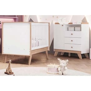 Quarto Infantil Completo Confete 2 Peças (1 Cômoda + 1 Berço) QI65 Branco/Jequitiba - Henn Abaixo segue os produtos do KIT: Quarto Infantil Completo Confete 2 Peças (1 Cômoda + 1 Berço) QI65 Branco/Jequitiba - Henn