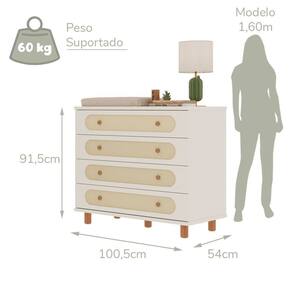 A linha Carolina Baby Essence une design atemporal, segurança e funcionalidade em móveis pensados para os primeiros momentos. No Conjunto Aurora Clássico (Berço 3 em 1 Cômoda), a estética natural aparece em linhas retas, proporções equilibradas e acabamentos premium em madeira maciça e MDF, com pintura atóxica. O berço é certificado pelo INMETRO, acompanha mini berço com mini colchão incluso e evolui para berço e mini cama, com 4 níveis de altura do estrado e rodízios de silicone (um par com travas). Colchão do berço (130x70) não incluso. A cômoda completa o conjunto com corrediças telescópicas de aço, divisórias internas em MDF 12cm e kit anti-tombamento, garantindo organização e estabilidade. Disponível em Branco Soft/Marrom, Branco Soft/Jequitibá e Areia/Jequitibá. Acabamento da Gaveta: Pintura UV Acompanha Cama Auxiliar: Não Acompanha Colchão: Não Acompanha Manual de Instalação: Sim Acompanha Suporte para Mosquiteiro: Não Altura do Conjunto: 92 cm Ambiente Principal: Quarto de Bebê Certificado: Berço: Inmetro 012552/2025, Mini berço: Inmetro 012554/2025 Certificado INMETRO (código): Berço: Inmetro 012552/2025, Mini berço: Inmetro 012554/2025 codigo_ean: 7900288321497 Complexidade da Montagem: Alta: deve ser montado por um montador especializado Cor: Areia/Jequitibá Cor do Produto: Areia/Jequitibá Cor Interna: Branco Escala de Brilho: Fosco Escala de Brilho da Gaveta: Fosco Estampado: Não Estrado com Regulagem de Altura: Sim Estrado Regulável em Quantas Posições: 04 Largura do Conjunto: 235,5 cm Linha ou Coleção: Aurora Manual de Montagem e Instalação: https://product-hub-prd.madeiramadeira.com.br/996619555/documents/ada73e81-0ade-4134-9e2e-a5cb9c43b4c53372174671617697050659854.pdf Marca: Carolina Baby Material da Gaveta: MDF Material do Estrado: MDF Material do Fundo: MDF Material do Puxador da Gaveta: Madeira Maciça Material Principal: MDF Medida de Cada Item: Berço: 76cm x 135cm x 92cm, Cômoda: 100,5cm x 54cm x 91,5cm modular: Não Necessita Montagem: Sim Origem do Produto: Nacional Permite a Utilização de Cama Auxiliar: Não Peso: Berço: 51kg, Cômoda: 79kg Peso de Cada Item: Berço: 51 kg, Cômoda: 79 kg Pintura Atóxica: Sim Possui Capitonê: Não Possui Certificado: Sim Possui Espelhos: Não Possui Gavetas: Sim Possui Grade: Sim Possui Portas: Não Possui Prateleiras: Não Possui Rodízio: Sim Possui Trocador: Não Profundidade do Conjunto: 76 cm Quantidade de Gavetas: 04 Recomendações de Uso, Manutenção e Limpeza: Limpar com pano seco Sistema de Montagem: Parafusos, Cavilhas e Minifix Tamanho do Colchão Indicado (L x C): 70 x 130cm Tipo de Corrediça da Gaveta: Metálica Telescópica Tipo de Estrado: Removível Tipo de Grade: Fixa Tipo de Puxador da Gaveta: Externo