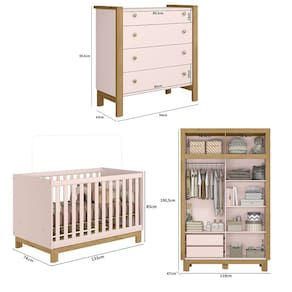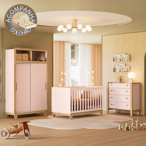 Características: Estrutura em MDP Acabamento em Pintura UV 02 Portas de correr 06 Gavetas com corrediças metálicas 01 Cabideiro metálico Sistema anti-tombamento Berço padrão Americano Estrado em MDF 6mm regulável em três alturas Pode ser transformado em mini cama Acompanha suporte para mosquiteiro Pés e Bordas em MDF 25mm Pintura atóxica e livre de materiais pesados Peso suportado no berço: 40 kg distribuidos e sem impacto Peso suportado nas gavetas: 5 kg distribuidos e sem impacto Peso suportado nas prateleiras: 5 e 7 kg distribuidos e sem impacto Peso suportado no cabideiro: 15 kg distribuidos e sem impacto Ideal para colchões de 70x130 *ACOMPANHA COLCHÃO*