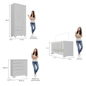 Quarto de Bebê Completo Guarda Roupa 3 Portas 2 Gavetas com Cômoda e Berço Moana Branco Branco. O Quarto de Bebê Moana é um conjunto completo de alta qualidade, composto por guarda-roupa, cômoda e berço. Cada peça possui detalhes elegantes, como rodapés, frente de gavetas e portas em MDP, além de um interior com pintura UV fosca e padrões de cores modernos. O guarda-roupa oferece funcionalidade com corrediças metálicas suaves, puxador de MDF e cabideiro de madeira revestida. A cômoda segue o mesmo padrão, proporcionando conforto e estilo. O berço é o destaque, com grade em MDF 15mm, estrado de madeira ajustável e a capacidade de se transformar em mini-cama e sofá, adaptando-se ao crescimento do seu bebê. Com o Quarto de Bebê Moana, conseguimos trazer qualidade e durabilidade para o seu ambiente, tornando-o não apenas um espaço encantador, mas também altamente funcional. Ean: 7896614979237