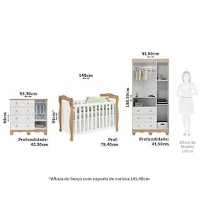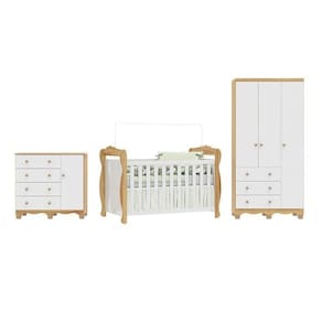 Informação Complementar: 1x Guarda-roupa de Bebê 3 Portas e 3 Gavetas 100% Mdf Mimo Branco Brilho/Amêndoa