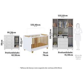 Medida de Cada Item: Guarda Roupa: 188,50cm x 122,10cm x 41,50cm | Cômoda: 88cm x 95,30cm x 42,30cm | Berço: 91,60cm x 132,40cm x 76cm