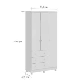 Medida de Cada Item: Guarda Roupa: 188,5 x 91,9 x 41,5 | Cômoda: 88 x 95,3 x 42,3 | Berço: 98,6 x 132,4 x 76 (AxLxP - cm)