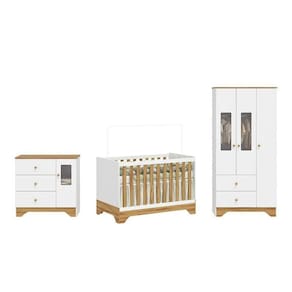 1x Cômoda Infantil 1 Porta com Janela Retangular e 3 Gavetas 100% Mdf Cocada Branco Brilho/Amêndoa