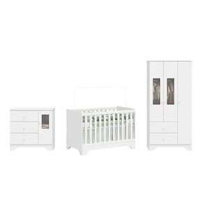 1x Cômoda Infantil 1 Porta com Janela Retangulo e 3 Gavetas 100% MDF Cocada Branco Brilho