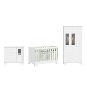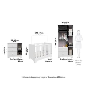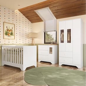 Com design retrô, inspirado nas décadas passadas, combinamos a elegância clássica com praticidade moderna, proporcionando um espaço encantador para o seu pequeno crescer e sonhar! São produtos desenvolvidos em 100% MDF, acabamento em pintura UV atóxica e bordas arredondadas, oferecendo mais segurança para toda família. As gavetas possuem corrediças telescópicas que garantem o deslize suave e silencioso. O berço é certificado peço INMETRO e permite o uso como minicama ou minisofá. Transforme o quarto do seu bebê com produtos elegantes, atemporais, com a qualidade e o design que você procura! Ambiente comporto por: - 1 Guarda Roupas 3 Portas com Janelas 194,50 x 92,90 x 42 (A x L x P - cm) - 1 Cômoda 1 Porta com Janela 89,40 x 92,90 x 42 (A x L x P - cm) - 1 Berço Mini Cama 88,20 x 132,4 x 75,60 (A x L x P - cm)