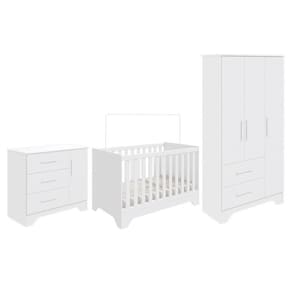 1x Cômoda Infantil 1 Porta e 3 Gavetas 100% Mdf Liam Branco Brilho