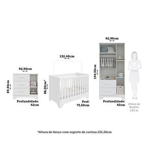 Informação Complementar: 1x Berço Mini Cama 3 em 1 Americano 100% Mdf Liam Retrô Branco