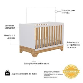 Informação Complementar: 1x Berço Mini Cama 3 em 1 Americano 100% Mdf Liam Retrô Branco Brilho/Amêndoa
