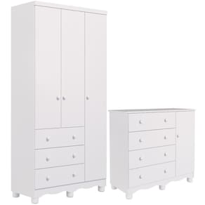 C - Qual a configuração do Guarda Roupa Infantil e Cômoda Infantil Junior da Móveis Peroba? É uma Cômoda infantil Junior com 4 gavetas e 1 porta. Guarda Roupa Infantil Junior com 3 gavetas e 3 portas.