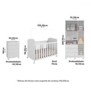 - Acompanha: 1 Guarda-Roupa, 1 Cômoda, 1 Berço, Manual de Montagem e Kit Ferragens