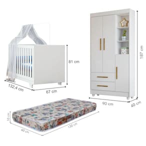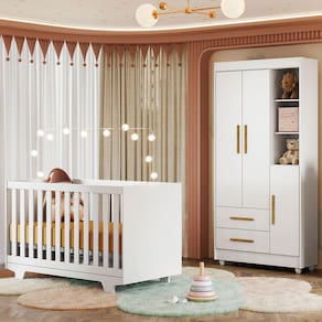 O(a) Quarto de Bebê Completo Lara 100% Mdf 3 Portas 2 Gavetas Branco 5354 - Tigus Baby é produzido em 100% MDF na escala de brilho Fosco, e possui um grau de dificuldade de montagem: Médio.
