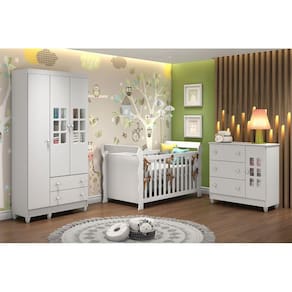O Quarto de Bebê Completo Lara Branco Brilho Carolina Baby irá te encantar e deixar o ambiente de seu filho ainda mais aconchegante, deixando harmonizado, com estilo diferenciado, combinando com diversos tipos de decorações e ambientes. Possui berço estilo marquesa versátil que se transforma em mini cama ou sofazinho, um guarda-roupa 03 portas e uma cômoda 03 gavetas com sapateira.