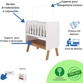 Dimensões do Mini Berço montado: Altura 91,5cm x Largura 86,8cm x Profundidade: 50cm