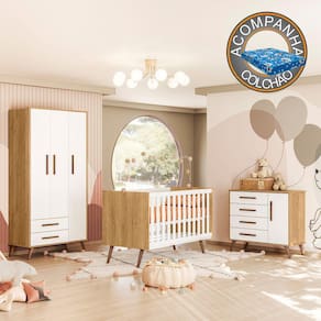 Características Estrutura em MDP Acabamento em pintura UV Acetinada Atóxica Grades de Proteção em MDF Estrado em MDF com 3 Opções de Altura Berço 2 em 1 - Pode ser Montado no Modelo Mini Cama Acompanha suporte para mosquiteiro ACOMPANHA COLCHÃO 130 X 70 Suporta até 40 kg 04 Portas articuladas 06 Gavetas externas Dobradiças e corrediças metálicas Cabideiro oblongo metálico Amplo espaço interno com prateleiras estrategicamente posicionadas para melhor organização Sistema anti-tombamento para evitar riscos de acidentes Ótima divisão interna para roupas longas Pés retrô.