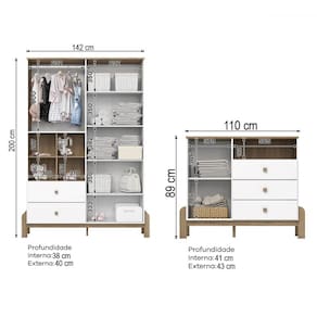 - Acompanha: 1 Cômoda + Guarda-Roupa + Kit Ferragens + Manual de Montagem