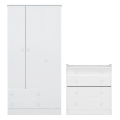 Quarto de Bebê Doce Sonho com Roupeiro 2617 e Cômoda 2523 Qmovi Branco