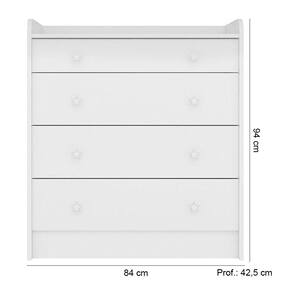 Dimensões Cômoda: Altura: 94 cm Largura: 84 cm Profundidade: 42,5 cm