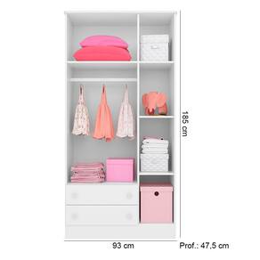 Dimensões Guarda-Roupa: Altura: 185 cm Largura: 93 cm Profundidade: 47,5 cm