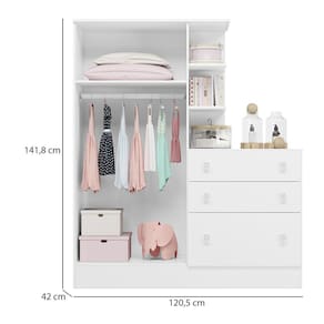 Características:Estrutura em MDPAcabamento em Pintura UV Atóxica02 Portas e 03 GavetasCabideiro oblongo metálicoGavetas com corrediças metálicasPuxadores duplosPortas com dobradiças metálicasPrateleiras com amplo espaçoGrades de ProteçãoAcompanha suporte mosquiteiroSuporta até 40 kgAcompanha Kit de rodíziosACOMPANHA COLCHÃO 130X60OBJETOS DECORATIVOS NÃO ACOMPANHAM O PRODUTO.Limpar utilizando apenas pano umedecido com água, nunca utilizar abrasivos ou esponjas de aço. Acompanha manual e todos os acessórios para montagem. Recomendamos que a montagem seja feita por um profissional. Garantia de 03 meses para eventuais defeitos de fabricação.Dimensões Roupeiro:Altura: 141,8 cmLargura: 120,6 cmProfundidade: 42 cmDimensões Berço:Altura: 95 cmLargura: 132,4 cmProfundidade: 64 cmItens Inclusos:01 Guarda Roupa c/ Cômoda01 Berço01 ColchãoInformações de Transporte:Peso Total: 105 Kg06 VolumesATENÇÃO, OBSERVAÇÕES IMPORTANTES.As imagens são meramente ilustrativas, não serão enviados objetos de decoração, eletrônicos e demais itens que não estejam especificados nos itens inclusos. É indispensável que seja feita a conferência do produto no ato da entrega e caso haja alguma divergência, seja feito o contato imediato com a loja e notificação no canhoto. Constatando defeito no ato da entrega o produto não deverá ser montado até tratativa com a loja. Não será efetuada a troca do produto após a montagem ter sido efetuada. A montagem é de total responsabilidade do cliente e defeitos na montagem serão tratadas como assistências. Os processos de pendências serão tratados mediante a fotos para analise e conferência da informação. As cores do produto podem variar de acordo com o seu monitor, a iluminação do ambiente em que você está e até mesmo a sua percepção visual. Não nos responsabilizamos, no ato da entrega, por subir escadas e elevadores. Eventuais despesas são de responsabilidade do cliente. Dúvidas serão tratadas via protocolo."