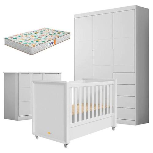 Quarto de Bebê Eloá com Berço Americano Tutto New Branco Acetinado e Colchão Gazin – Phoenix Baby