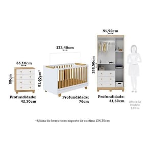 - 1 Berço Minicama 91,60 x 132,40 x 76 (A x L x P - cm) Altura do Conjunto: 188,5 cm Ambiente Principal: Quarto de Bebê codigo_ean: 7900288276094 Cor: Branco Brilho/Amêndoa Cor do Produto: Branco Brilho/Amêndoa Estrado com Regulagem de Altura: Sim Informação Complementar: 1x Guarda-roupa de Bebê 3 Portas e 3 Gavetas 100% Mdf Mimo Branco Brilho/Amêndoa Largura: 91,9 cm Altura: 188,5 cm Peso: 54,89 kg Profundidade: 41,5 cm Necessita Montagem: Sim