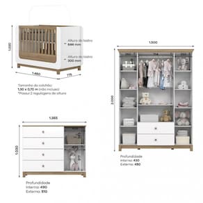 Dimensões Berço Altura: 102 cm Largura: 146 cm Profundidade: 77,5 cm Peso: 42,00 kg